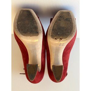Miu Miu Red Suede Peep Toe Heels w/ Bows, Size 38.5 (IT), 8.5 (US)