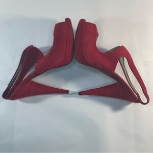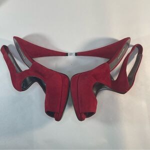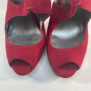 Miu Miu Red Suede Peep Toe Sling back cutout Platform Sandals Size 38.5 Cone Heels