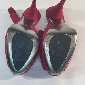 Miu Miu Red Suede Peep Toe Slingback Platform Sandals Size 38.5 Cone Heels