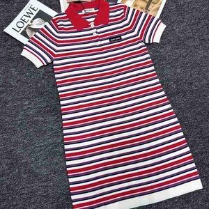 Chic striped mini dress. Features red and white pattern. Polo collar design. Perfect for casual outings.