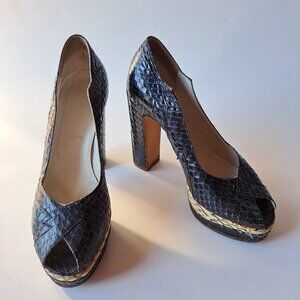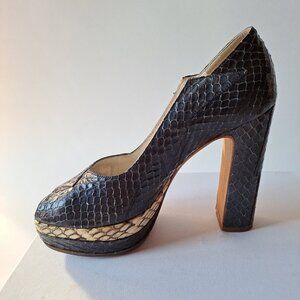 Miu Miu Runway Python Dark Blue Platform Heels Shoes Size 36 / US 6