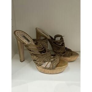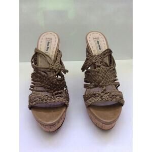 Miu Miu Shine Intreccio Sughero Twine Wedge Sandals - Size 39