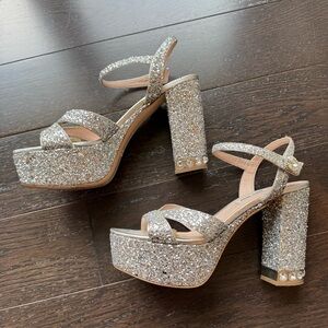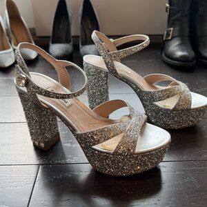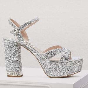 Miu Miu | Silver Glitter Platform Heels, 37