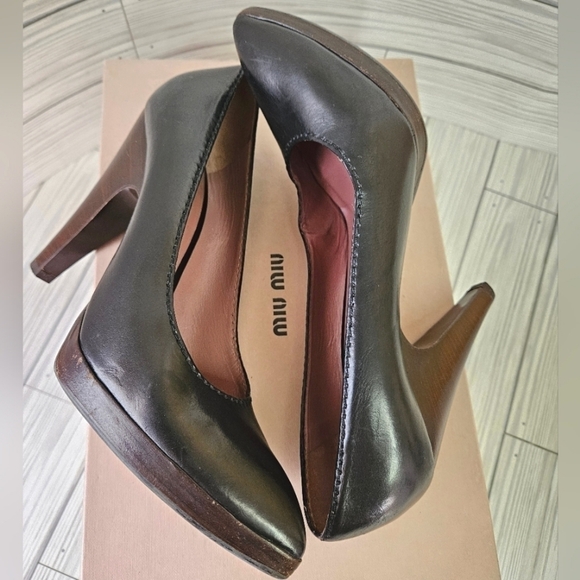 Miu Miu Soft Lux Leather Pointed Toe Heels in Nero Black EU Sz 38 1/2 US Sz 8