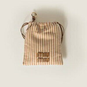 Miu Miu Striped Drawstring Pouch Beige Camel Brown