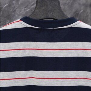 Chic striped top with navy, white, and red. Features a round neckline and long sleeves. Perfect for casual outings