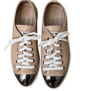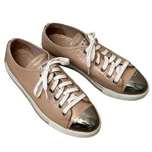 Miu Miu Tan Patent Leather Metal Cap Toe Sneakers Size 36 (US Size 6)