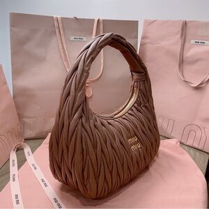 Chic Miu Miu hobo bag with quilted design. Stylish and versatile for any outfit.