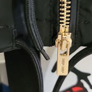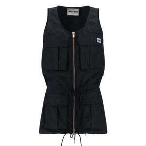 Stylish black vest/dress by Miu Miu. Features a gold zipper and multiple pockets. Perfect for layering.