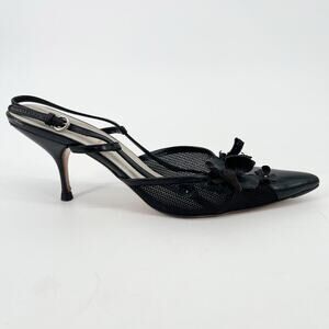 Miu Miu Vintage Retro Black Flower Bow Mesh Pointed Toe Slingback Heel IT 38