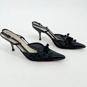 Miu Miu Vintage Retro Black Flower Bow Mesh Pointed Toe Slingback Heel
