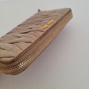 Miu Miu Wallet Matelasse Pink Large Accordion Card Holder Logo Leather Zip