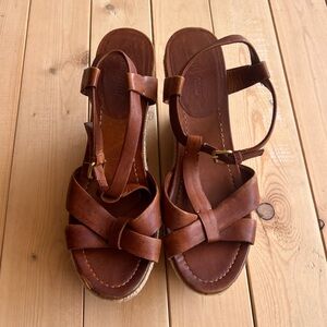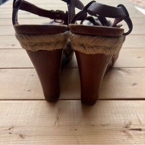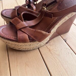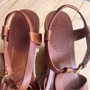 Miu Miu Wedges Brown Espadrille Leather Strap 4.75” High Tall Summer Size 40