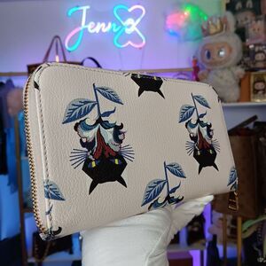 Miu Miu White & Blue Leather Limited Edition Black Cats Large Zip Wallet