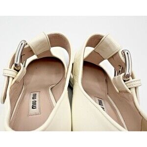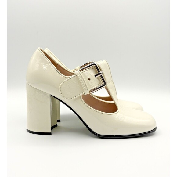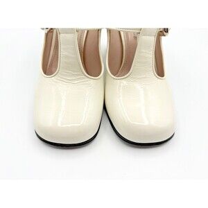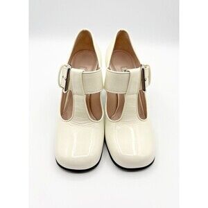 Miu Miu White Patent Leather Mary Jane Heels T-Strap Block Heel Sz EU 35.5