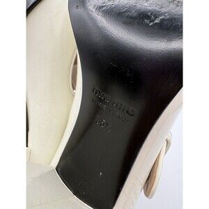 Item Condition: There are black marks on the inner side of one shoe. There is creasing to the leather. There is some damage to the leather on the back of the heel of one shoe. There is some slight discoloration to the white color of the leather. Please carefully examine photos prior to purchase and understand this is a pre-owned item with wear.