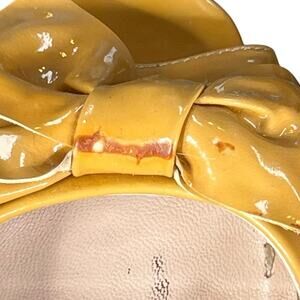 In good preowned condition with a red mark on the back of the bow on one shoe- please see photos for reference