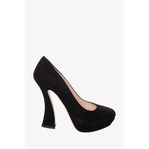 Miu Miu Womens Black Suede Curved Heel Platform Pump size 36.5/6.5 Black Witchy