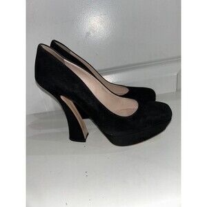 Miu Miu Women’s Black Suede Curved Heel Platform Pump size 36.5/6.5 Black Witchy