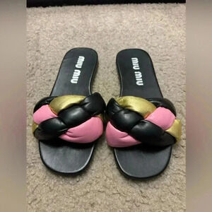 Miu Miu Women’s Calzature Donna Slip On Woven Slide Sandals