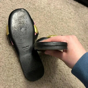 In good condition, a tad bit worn on the front of the sandals as shown in the picture, but still have a lot of life left in them!