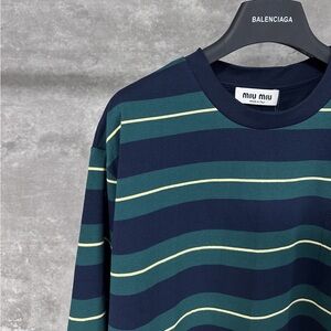 Miu Miu Women's Loose Gray-Blue Striped Long Sleeves