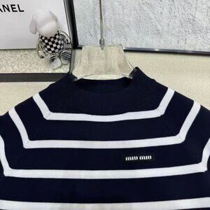 Miu Miu Women's Striped Knit Short-Sleeve Top
