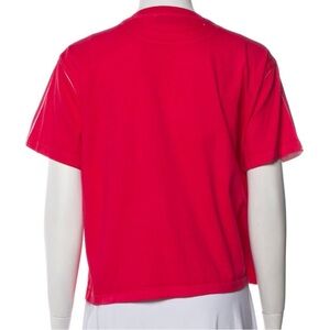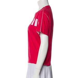 Stand out with this bold red/ magenta Miu Miu tee. Features short sleeves and striking logo design. 2023 Miu Miu. Originally $895.