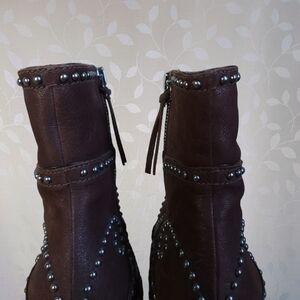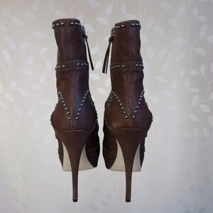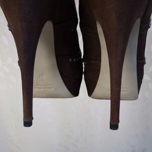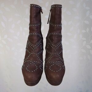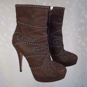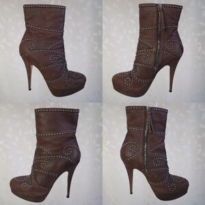 Miu Miu Y2K Platform Stiletto Boots - Studded Brown Ankle Heels 37 Designer