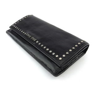 Miu Miu long zipper Wallet heart charm studs black leather Includes a Certificate of Authenticity!