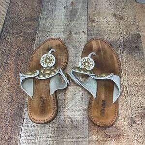 Miu Miu cream Kitten Heel Gold Studded Slip On Sandals Sz 40