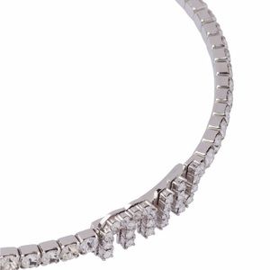 Silver-tone crystal-embellished logo necklace from MIU MIU featuring brass, stainless steel, crystal embellishment, logo plaque and concealed magnetic fastening.