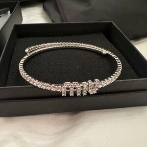 Miu Miu crystal-embellished logo necklace