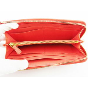Miu Miu pink Wallet orange ribbon patent zipper long leather