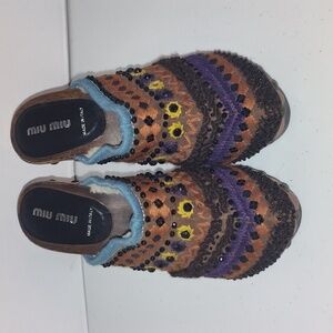 Miu miu STUDDED PLATFORM CLOGS block heel with shearling on inside size 36.5 6-7
