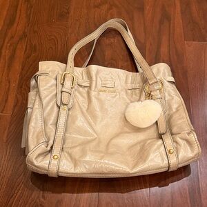 Miu miu beige boho leather tote bag with bow detailing