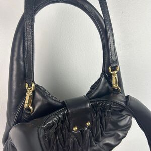 Miu Miu Matelassé Top Handle Leather Bag - gold hardware