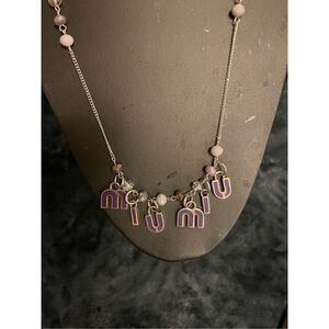 Authentic Miu Miu pendants on a NON-BRAND 18 inch silver plated chain with purple beads. Original and unique #MiuMiu