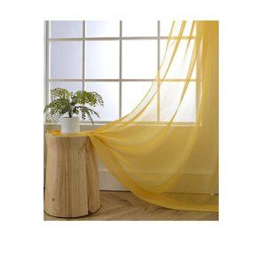 Miuco Yellow Textured Sheer Curtain Set (2 Panels)