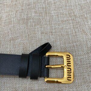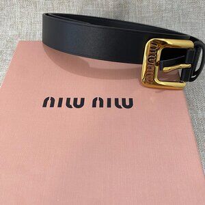 Miumiu Black Leather Belt With Gold Classic Buckle