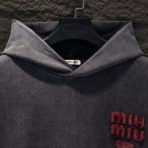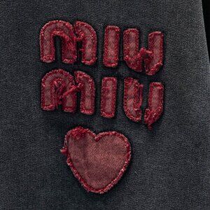 Miumiu distressed patchwork embroidery hooded sweatshirt