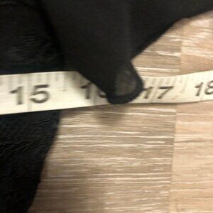 Elegant black maxi dress with lace detailing. Features short sleeves and a flowing skirt. Perfect for formal occasions.