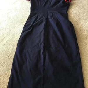 Adorable Navy Blue Dress with Red Cap Sleeves and Red Buttons