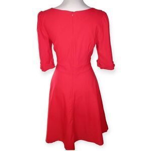Elegant red dress by Miusol. Features a fitted bodice and flared skirt. Perfect for any occasion.