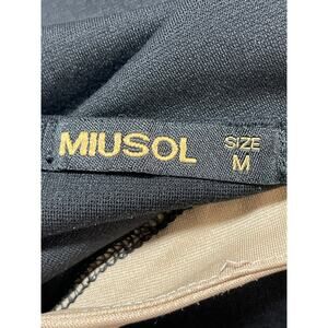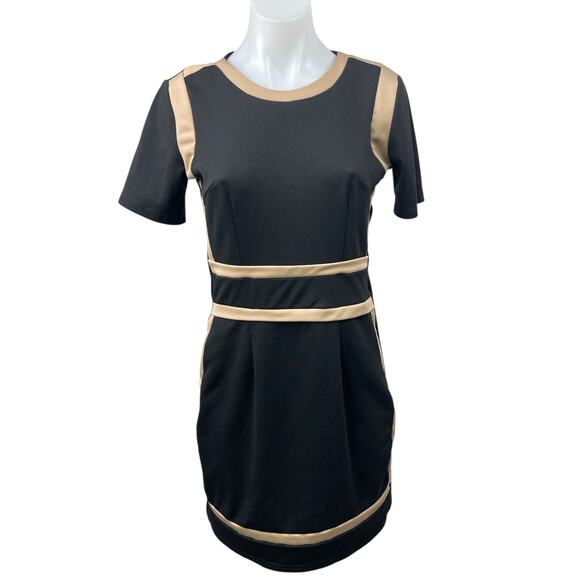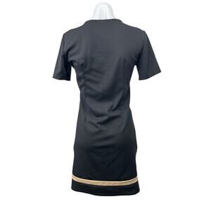 Miusol Womens Black Gold Pleated Short Sleeve Mini Bodycon Sheath Dress Size M