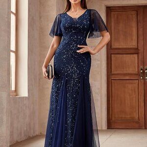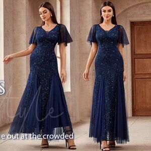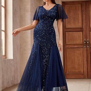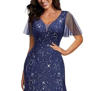 Miusol Women's Sequin Lace Deep-V Neck Tulle Mermaid Hem Evening Party Dress