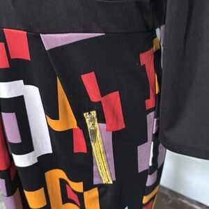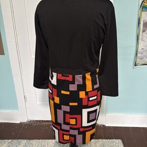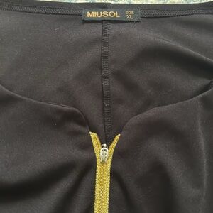 Miusol color block, graphic, geometric, gold zipper, long sleeve mini dress XL