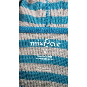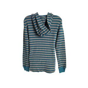 Mix & Co Thermal Hoodie Henley Pullover Sweatshirt M Blue Gray Stripe Streetwear