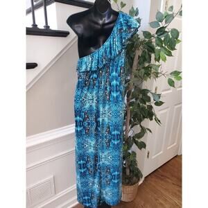 Mix & Co. Women's Blue Polyester One Shoulder Off Sleeveless Long Maxi Dress L