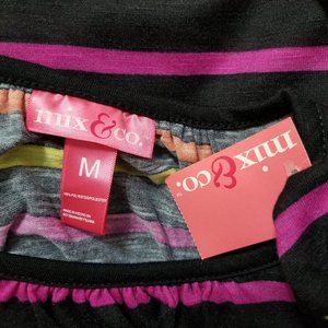Mix & Co. top Medium NWT striped tie cuffs cold shoulder ruched neck elastic hem